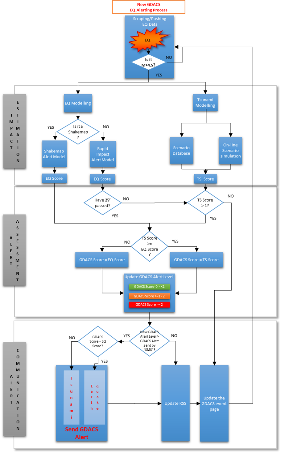 These data are processed by two different models to calculate the Alert Level (“Shakemap” and “EQ Parameters” Alerting Model). The GDACS seismic alerts are primarily based on the “Shakemap” Alerting Model.